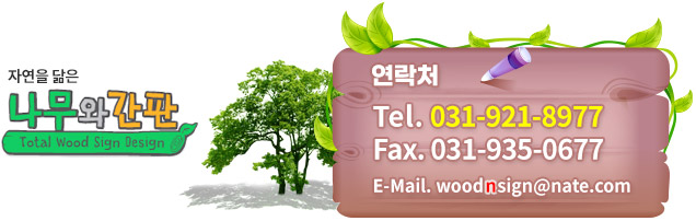 ¿ì¸® ³ª¹«¿Í °£ÆÇÀº ½Ç³»¡¤¿Ü ³ª¹«¾È³»ÆÇ, ±Ý¼Ó¾È³»ÆÇÀ» Á¦ÀÛÇϰí ÀÖ½À´Ï´Ù.